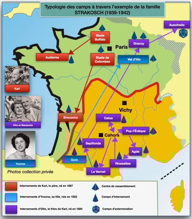 Carte des camps où ont été internés les membres